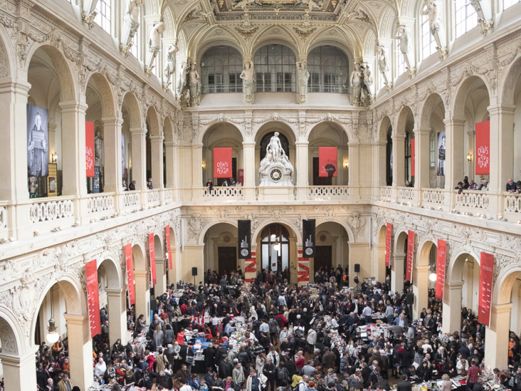 J’avais eu l’occasion de passer l’an dernier, lors de l’édition précédente, au Palais de la Bourse (lieu central de la manifestation qui se déroule dans toute la ville). J’avais déjà été impressionné par l’ampleur du festival. Venu pour assister à une conférence d’un scénariste de série américaine, j’avais alors profité de quelques minutes de latence pour découvrir comme beaucoup d’autres visiteurs les nombreux auteurs en dédicace, les grands stands dressés par les librairies et les maisons d’éditions. A l’époque je n’avais encore qu’un manuscrit d’un livre policier à caractère humoristique et ne savait trop à qui l’adresser. C’est là, que j’ai vu pour la première fois Jean-Luc Tafforeau des Editions A.O., mon futur éditeur, qui m’incitera à lui envoyer par mail, le premier chapitre de mon roman portant pour titre alors à l’époque « Un polichinelle dans le terroir » (désormais titre d’un chapitre).